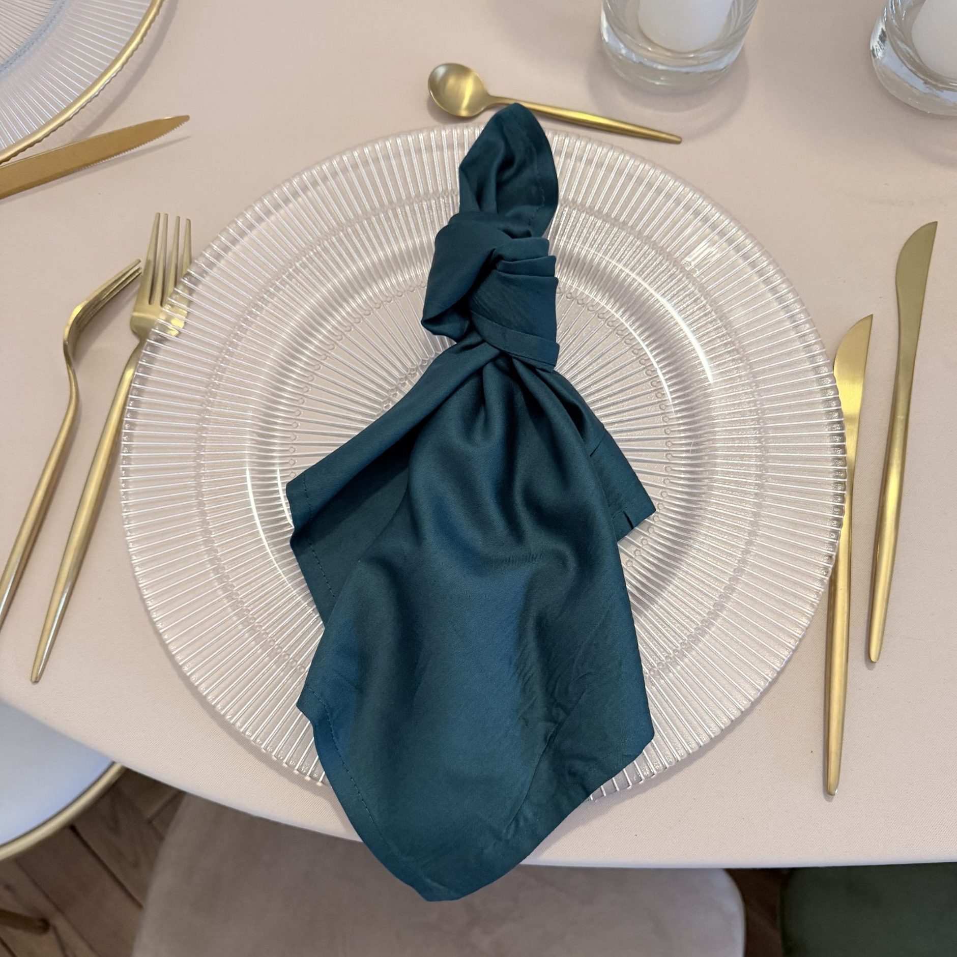 Șervetul verde smarald adaugă o notă de prospețime și eleganță oricărui decor de masă. Culoarea sa intensă și rafinată se integrează armonios în aranjamente tematice naturale, jungle, rustice sau în set-up-uri sofisticate cu accente aurii și lemn.